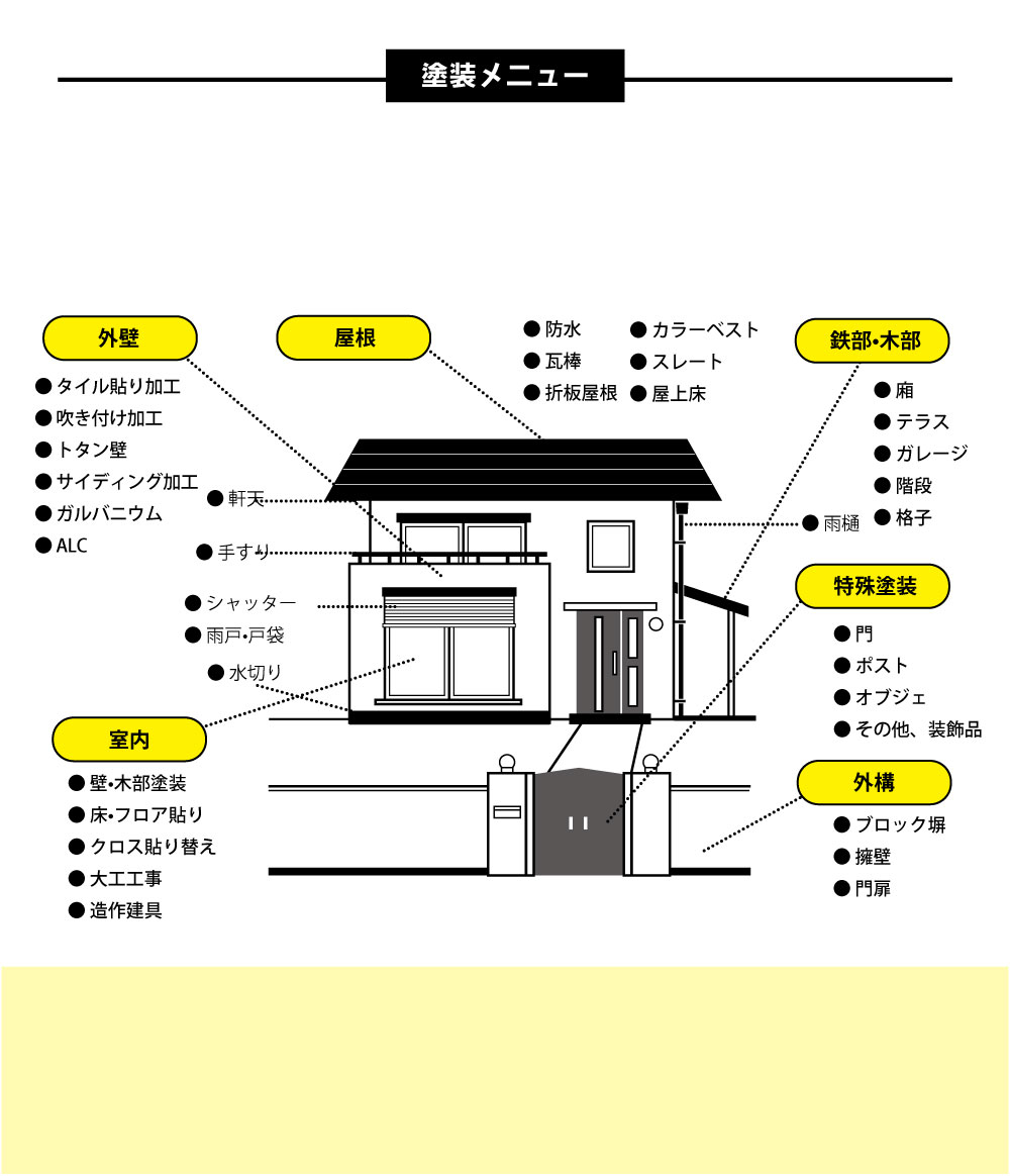 図は主要な部分の一例になります。実際には細かな作業個所があります。また、特殊な設備、部材、などへの塗装もお気軽にご相談ください。